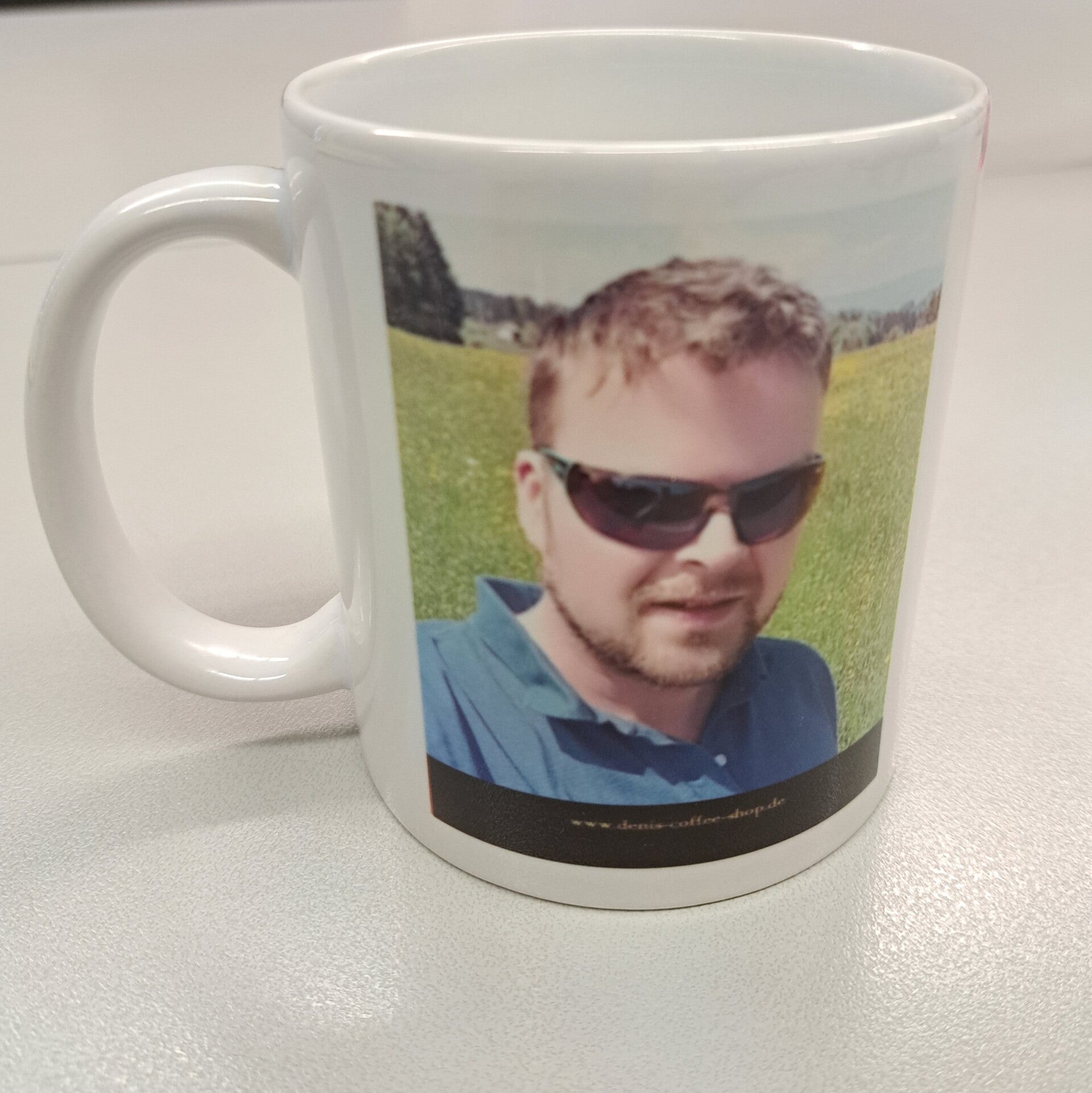 Hier können Sie eine eigene Tasse mit ihren Lieblingsbildern oder Firmenlogo bestellen. Hergestellt in der Schweiz.